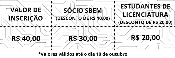 Todos participantes do evento deverão fazer sua inscrição e realizar o pagamento, conforme tabela a seguir: